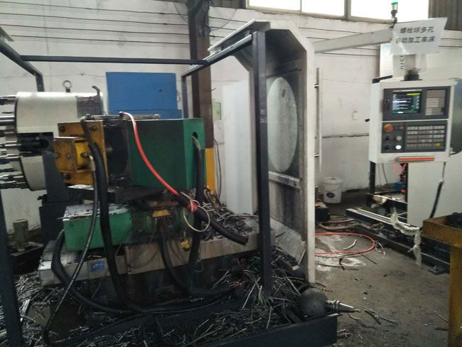 - 數控加工螺栓球設備 山東省濟寧市恒興金屬結構有限公司自主研發的螺栓球多孔加工數控車床